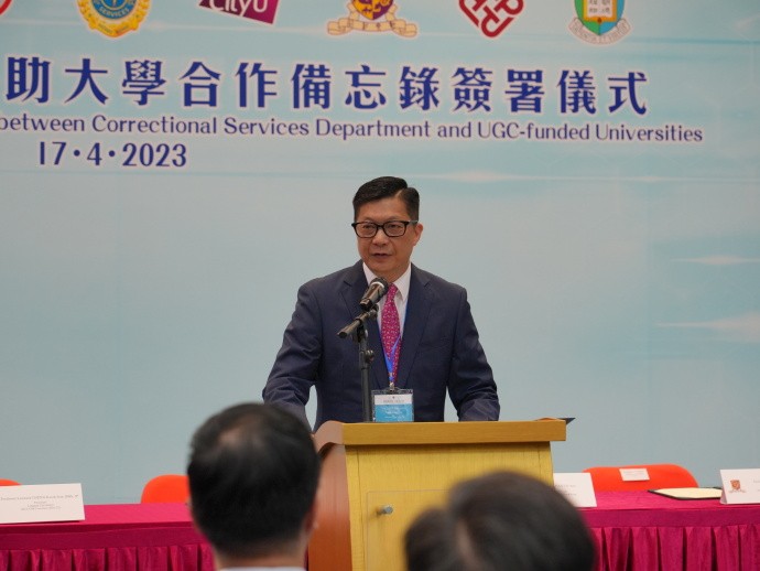 香港新聞網4月17日電 繼早前與香港都會大學簽署合作備忘錄後,香港懲教署再與八大教資會資助大學簽署合作備忘錄。保安局局長鄧炳強今日(17日)表示,這次合作為有志繼續升學的在囚青年提供學習支援,希望在囚青年把握機會,為日後重投社會做好準備。 鄧炳強在社交平台發文稱,很開心見證懲教署再與八大教資會資助大學簽署合作備忘錄,為青少年在囚人士延續升學機會。這次合作為有志繼續升學的在囚青年提供學習支援,課程進修也可以轉換八大學分。強調只要在囚青年想學習,八大及特區政府一定會全力支援。