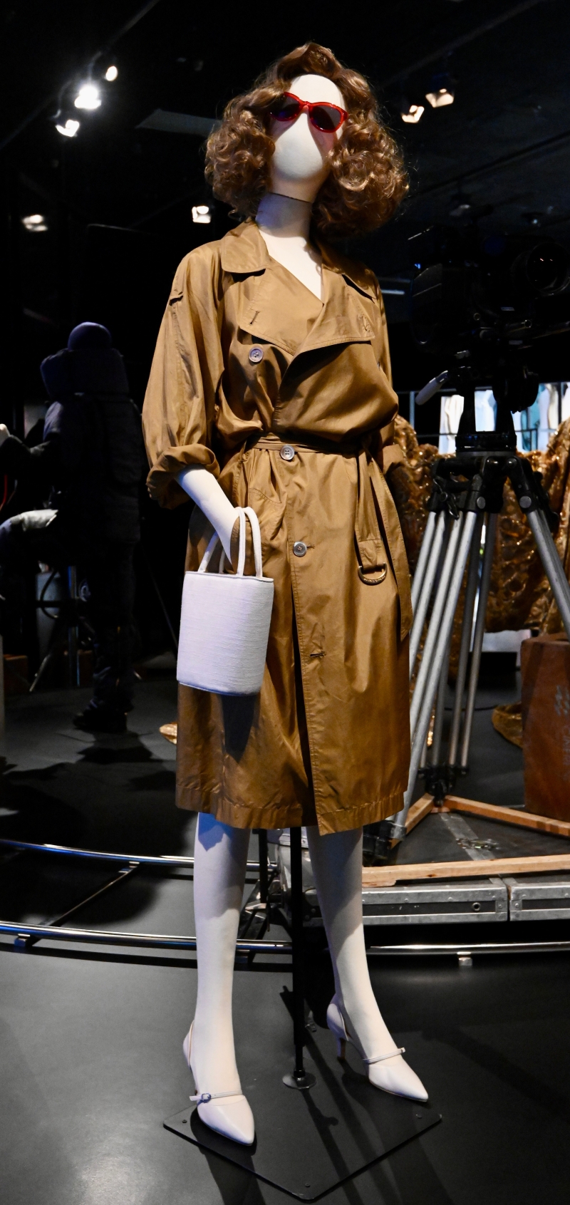 圖片來源:政府新聞網。圖示周潤發及鞏俐於《滿城盡帶黃金甲》中的帝后大朝服造型。 有關道具的展品則有邵氏電影製片廠佈景設計資料冊;《千機變》中的殭屍獵人劍;《狄仁傑之神刀龍王》中的特別道具“水中馬”、《西遊・降魔篇》中的《兒歌三百首》、《殭屍》中的道具羅庚等。