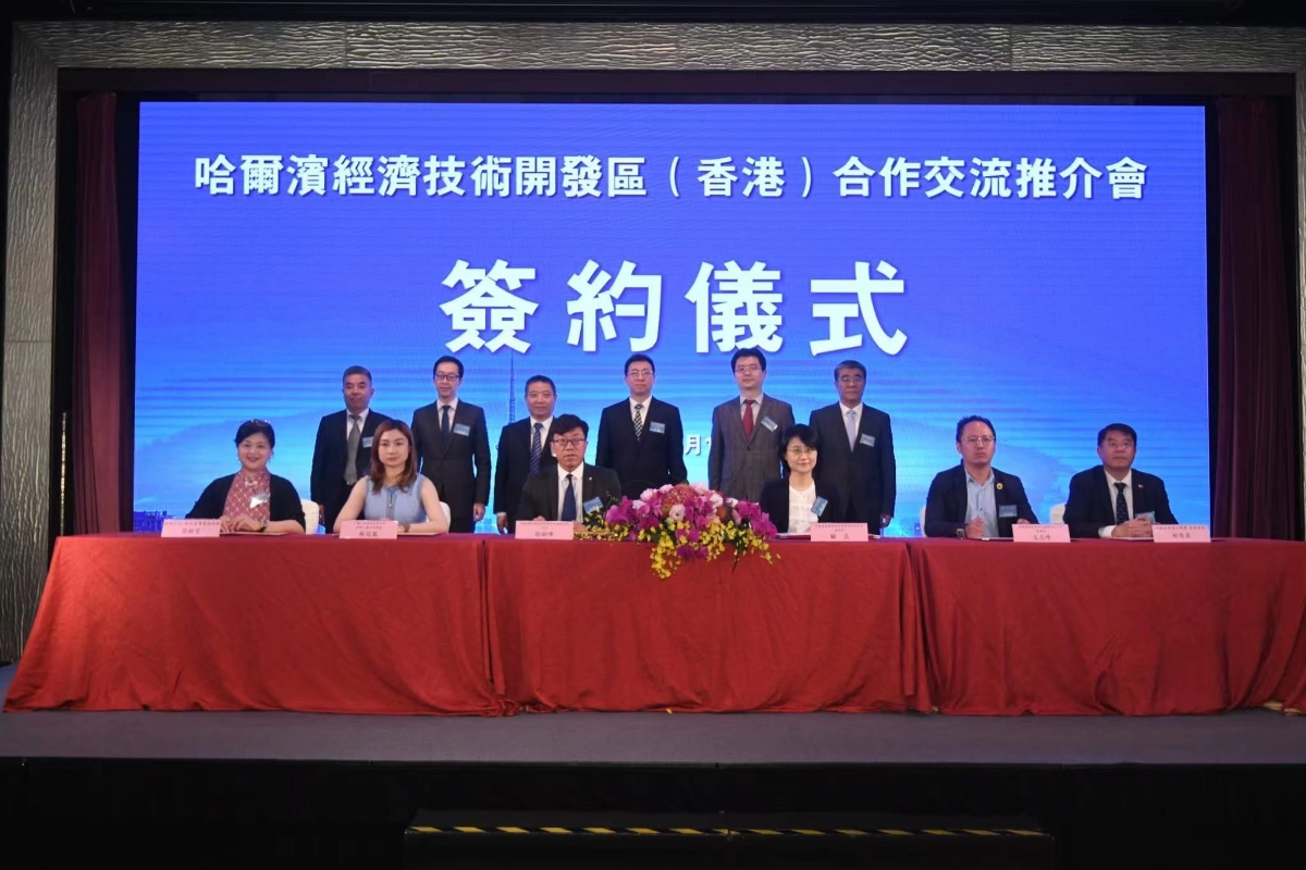 香港特區政府商務及經濟發展局副局長陳百里在會上致辭時稱,黑龍江省充滿商機,是香港進入俄羅斯等中東歐市場的橋頭堡。 “若兩地在創科發展方面強強聯手,必定可以發揮強大的協同效應。”陳百里舉例,生物經濟發展方面,香港16家國家重點實驗室中,9家從事與生物科技的研究。香港有5所全球百強大學,黑龍江省有大量創科領軍人才。“香港與黑龍江省可共同搭建國際生物領域科研平臺,共用發展紅利。” 陳百里期待,交流會夠進一步加強兩地友誼,特別是加強促進兩地的經貿合作,在協助港商推廣品牌和拓展內地市場的同時,也可以讓黑龍江省的企業更瞭解香港協助企業走出去的優勢,推動兩地企業共同把握商機。 香港商報董事總經理戴傑致歡迎詞,香港和哈經開區經濟互補性很強,合作前景十分廣闊,香港商報作為此次活動的承辦單位,將充分利用港媒自身優勢和行業獨有客源,為哈爾濱經濟技術開發區與香港架起合作的橋樑。相信此次推介會將對加強香港與哈經開區的產業融合,推動兩地經濟高品質發展,實現優勢互補,一起打造宜居、宜業、宜遊的世界級城市群,共同譜寫美好未來新篇章。 哈爾濱經濟技術開發區管理委員會開放招商領導小組常務副組長關和東圍繞哈經開區的現代產業體系、科技創新能力、擴大對外開放、優化營商環境等方面作推介。 作為黑龍江最大的現代產業集聚區,哈經開區構建了以先進裝備製造、綠色食品、新一代資訊技術、大健康四大主導產業和航空、汽車、機器人與大資料、新材料、新能源、生物技術和現代金融八大新興產業集群為核心的“四梁八柱”現代產業體系。入區企業突破20000家,工業門類覆蓋全省85%以上,規模以上工業企業達258家,外商投資企業220餘家,主機板上市公司占黑龍江省半壁江山,作為黑龍江省唯一入選區域確定為全國第二批先進製造業和現代服務業融合發展試點,國家新型工業化裝備製造產業示範基地、國家級文化和科技融合示範基地、國家外貿轉型升級基地、國家電子商務示範基地等22個國家級產業基地集聚賦能。2019年,21世紀經濟研究院發佈的《全國經開區營商環境指數報告》顯示,哈經開區列全國營商環境指數排名居東北三省首位。 推介會中,全港各區工商聯會長楊凱山、國際藥膳食療學會會長侯平、凱銀信託執行董事兼總經理梁穎雯、十曜工房科技有限公司創辦人兼行政總裁蘇冠嵐、正版正貨商戶聯盟創會會長林俊嘉、新鼎興集團有限公司創辦人梁雅媛、名策專業商務有限公司秘書長林炬文分別發言,他們紛紛表示,哈經開區有良好的產業基礎、優質的營商環境,此次活動又這樣的誠意滿滿,很期待去哈爾濱,進一步瞭解哈經開區,達成合作。 活動上,哈爾濱經濟技術開發區與香港金融發展協會、香港黑龍江社團總會、全港各區工商聯會、香港創意產業協會以及國際藥膳食療學會達成戰略合作。並與香港柏伊人貿易有限公司、十曜工房科技有限公司、凱銀信託、頂峰國際影視文化媒體有限公司、正版正貨商戶聯盟創會、大健康食品集團(香港)有限公司、一品堂設計有限公司、新鼎興集團有限公司、名策專業商務有限公司等香港企業簽署合作備忘錄,生意額達17.5億港元。