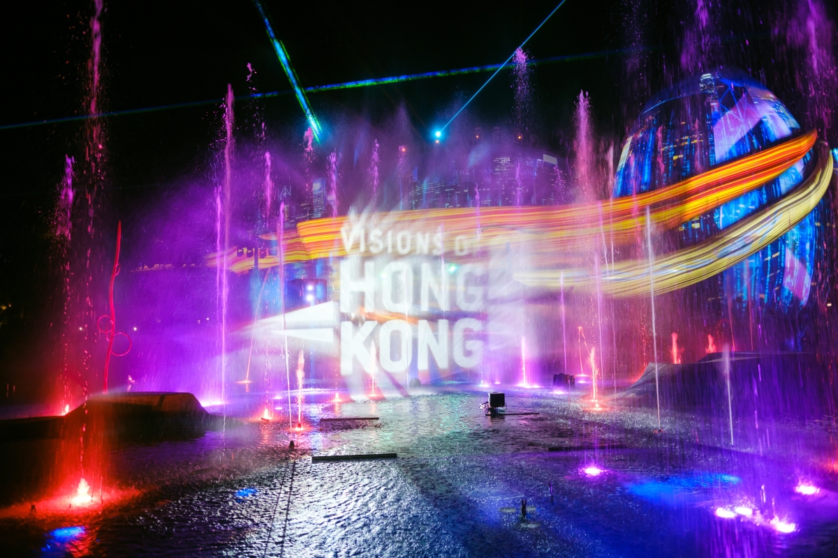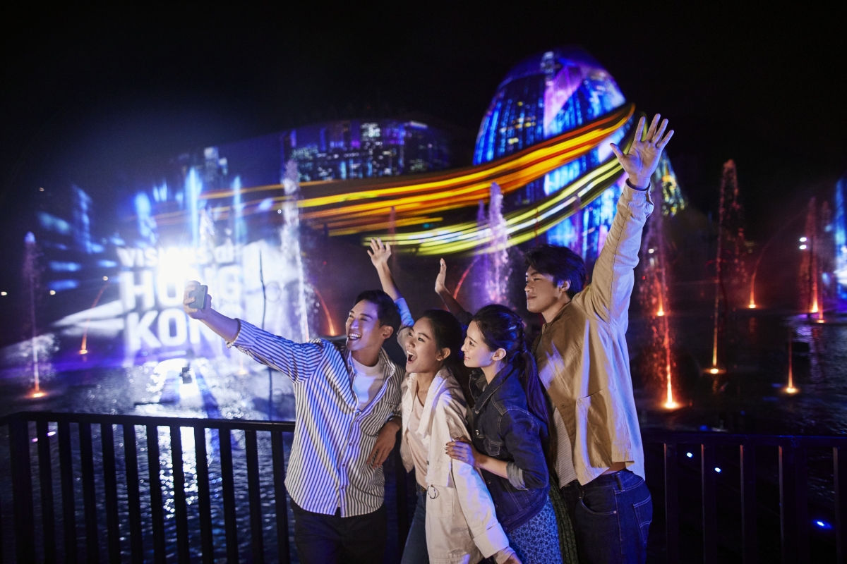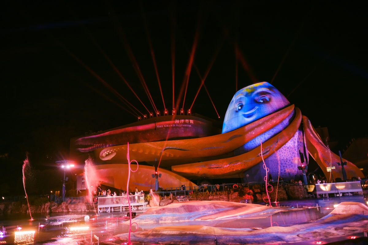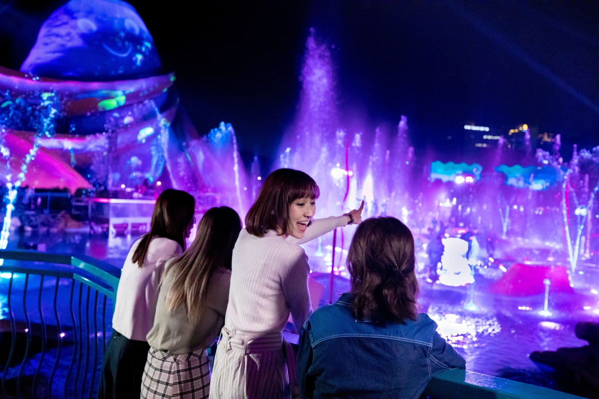 圖片來源:香港海洋公園。 另一匯演“光影都會”則將帶你穿越夢幻般的超現實景觀,透過多媒體噴泉投影,以光影展現香港的歷史、多元文化及大自然之美。璀璨幻光與舞動噴泉將在你的眼前互 相交織,勢必令你動容。