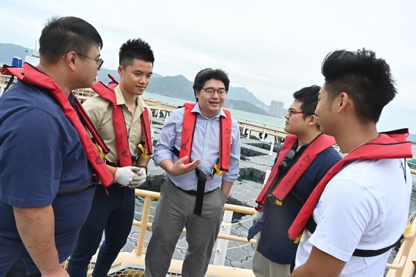 圖片來源:香港政府新聞網 抓住契機 投身漁業 他盛讚培訓理論實踐並重,理大和漁護署人員循循善誘,使他獲益良多,且有助增強業內人際網絡,終成功與同學自組公司,投身養殖業。 除負責管理和協助培訓,漁護署高級漁業主任(水產養殖)周永權說,署方人員日常也要在示範場負責簡單維修、養殖試驗等一系列工作,日曬雨淋在所難免,幸同僚從不計較抱怨,希望利用示範場讓業界和公眾了解現代化深海網箱養殖模式,令深海網箱養殖在本地持續發展。(完) 【編輯:崔靜雯】