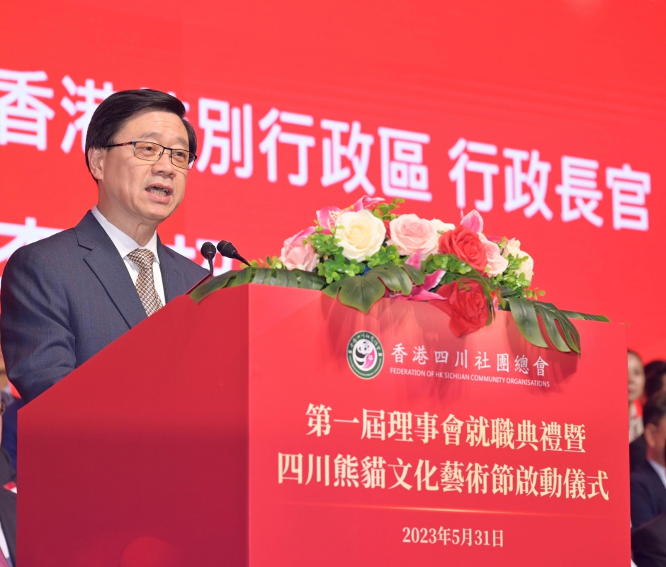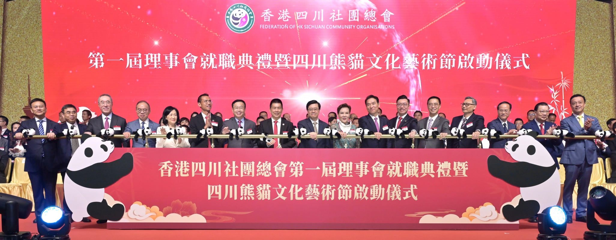 他說,川港兩地的緊密聯繫,除了兩地政府共同努力以外,社會各界和民間團體的助力也至關重要。香港四川社團總會自創立以來,致力團結在港川籍鄉親,擔當川港之間的溝通橋樑,促進兩地民心互通,是愛國愛港的重要力量。相信在各位理事的領導下,總會定會朝着“港川同心,共建和諧社會”的願景進發,推動川港兩地一同邁步向前。 香港四川社團總會這次舉辦的四川熊貓文化藝術節,節目豐富,多位川籍藝術家應邀來香港獻藝,為香港市民帶來文化盛會。“我知道總會將聯合多個省級同鄉社團,在這個周末舉行家鄉市集嘉年華,向市民展示家鄉特色,讓人期待。” 身兼四川政協常委、港區委召集人唐安英致辭表示,香港四川社團總會與祖國同心、與香港同行。政治上敢於擔當,積極支持實施香港國安法、落實“愛國者治港”;社會民生上,協助政府救助會員抗擊疫情、深入基層訪貧問苦;會務建設突飛猛進,總會目前已有近二萬會員,十六個屬會,在支持香港特區政府依法施政、促進港川交流合作的重要工作中積極有為,展現了川軍的赤誠和勇敢,並在義工培訓、青年工作、經貿往來、文化交流等方面發揮平台作用,為在四川和香港說好兩地故事持續發揮橋樑角色。 出席的主禮嘉賓還有中央統戰部三局副局長彭嶺果,行政會議非官守議員召集人葉劉淑儀,文化體育及旅遊局局長楊潤雄、政制及內地事務局局長曾國衞、署理保安局局長卓孝業、民政及青年事務局副局長梁宏正,中聯辦社團聯絡部部長鍾吉昌等。(完) 【編輯:陈卓仪】