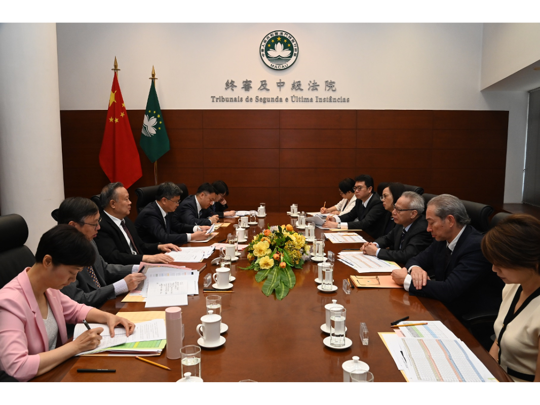 圖片來源:澳門新聞局。 岑浩輝院長與來賓們會面,並介紹了澳門特別行政區成立以來的整體發展以及特區法院的架構和運作情況。