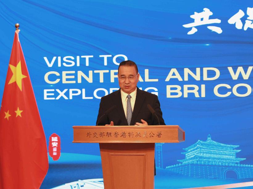 外交部駐港公署舉行“走進中國中西部,共促‘一帶一路’合作”啟動儀式。圖為公署特派員劉光源致辭。外交部駐港公署網站圖片 本次參訪活動有外國駐港機構總領事或代表、外國在港商會主要負責人、跨國企業及金融機構高管、媒體代表,以及香港特區政府官員商務及經濟發展局副局長陳百里、政制及內地事務局副局長胡健民等近70位嘉賓參團;將同赴河南鄭州、洛陽和陝西西安、延安四個城市。 劉光源指出,此次參訪,一是領略內陸城市對外開放的蓬勃活力;二是感受科技創新綠色發展的澎湃動能;三是探尋中華民族協和萬邦的文化基因。過去十年,中國依托“一帶一路”倡議,全面提升對外開放水平,為世界經濟發展注入不竭動力,為推動構建人類命運共同體搭建實踐平台。 劉光源說,香港作為內地與世界的“超級聯繫人”,有能力也更有意願全面參與助力“一帶一路”建設,在融入國家雙循環新發展格局中實現自身更好發展。這對廣大外國在港商界而言是更大舞台、更多機遇。外交公署願發揮外交所長,支持外國駐港領團和商界立足香港平台,同中國內地城市加強互利合作,更加踴躍地參與共建“一帶一路”高質量發展。