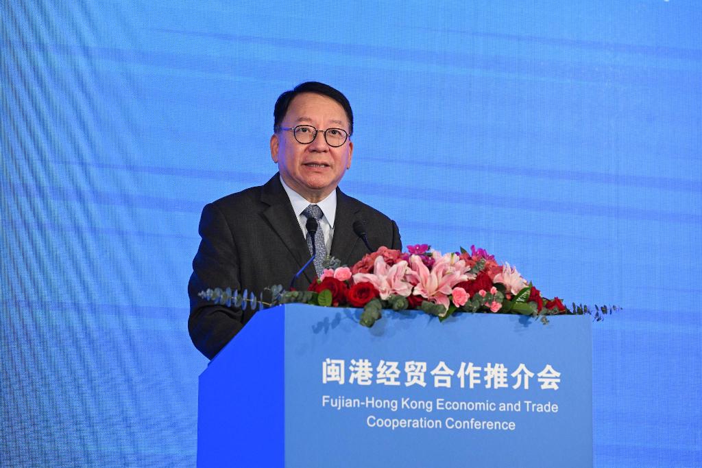 香港特區政府政務司司長陳國基今日(6月27日)在閩港經貿合作推介會暨重點合作項目簽約儀式致辭。香港特區政府新聞處圖片 福建省委書記、福建省人大常委會主任周祖翼致辭時,向與會的企業代表介紹福建省的省情和區位優勢、產業特色、基礎設施、生態環境等,同時也強調閩港合作共贏的重要性,對二者攜手共進,打開新的發展局面充滿信心。 “香港特區是福建省企業走出去的首選之地。福建省在港設立企業和分支機構1343個,投資額累計125.4億美元。”周祖翼表示,福建省是有福之地,香港特區是東方之珠。在推進中國式現代化建設的偉大進程中,閩港合作珠聯璧合,潛力巨大。 特區政府政務司司長陳國基致辭時指出,特區政府重視閩港的夥伴關係。2015年兩地政府更成立閩港合作會議機制,至今已舉行了三次會議,在金融、貿易投資、創新科技、文化創意以及教育、青年交流等不同領域加強聯繫合作。 “我相信兩地交流合作將會邁向更深層次、更廣領域、更高水平,全面貫徹優勢互補、互利共贏的原則。”陳國基對閩港關係的發展充滿信心。 香港貿發局主席林建嶽則從對外貿易領域深入分析,指兩地可藉助香港國際金融中心的優勢,以每年舉辦的亞洲金融論壇為契機,鼓勵更多的福建省科技產業赴港上市融資,合力推動科技產業金融的良性循環。貿發局也將充分發揮自身國際商貿交流平台的優勢,積極協作福建省對香港特區,以及海外優秀企業機構開展項目的對接。 福建省委常委、福建省人民政府常務副省長郭寧寧在會上推介福建省的投資環境、發展機遇。“新時代10年來,福建省生產總值連續跨越了4個萬億人民幣台階,去年突破了5萬億人民幣,居全國第八位,年均增長7.8%,居東部地區首位。” 她表示,福建省的經濟發展和居民收入同步提升,發展的成果也更好地惠及了人民群眾。 此次福建省代表團共促成閩港重點合作項目58個,總金額748億人民幣。其中33個在推介會現場完成簽約,合計簽約金額609億人民幣,包括利用外資項目24個、對香港投資項目1個、貿易合作項目1個、戰略合作項目7個。(完) 【編輯:馬華】