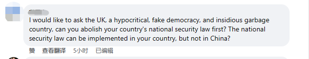 網友評論 “國家安全法可以在貴國實施,在中國卻不能實施?”有網友留言揭露英國的“雙標”之處——明明自己也有為國家安全立法,卻對香港國安法大肆抹黑。批評英國是一個“虛偽、假民主及陰險”的國家。 也有網友想起美國前防務承包商僱員斯諾登因曝光美國大規模監聽活動,被美政府以間諜罪、盜竊罪和未經授權洩露國防及情報資訊的罪名通緝,嘲諷英國政府對此“夾著尾巴裝傻”,卻對港府的通緝作法肆意抹黑。