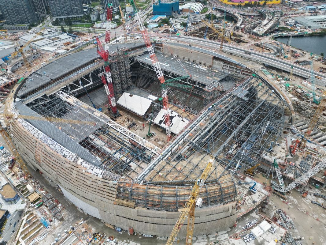 圖片來源:啟德體育園。 主場館的可開合大型上蓋為啟德體育園主場館的主要特色之一。整個主場館的上蓋及主鋼桁架,由15000噸鋼材組成,其主鋼桁架跨度達180米,而東西兩邊的開合式上蓋重逾4800噸。藉著啟德體育園臨海的地理優勢,相關構件於中山及東莞生產後,分成八組由水路運抵香港。項目團隊亦利用綜合數碼科技,如“建築信息模擬”及“可供製造及裝配的設計”等技術,事先把整個施工過程視像化,從而提升裝嵌的精準度,並有效優化整個設計及施工的程序。隨後,項目團隊會以先進的“超大型構件液壓同步提升技術”,將開合式上蓋的構件整體吊升到預設位置,此方法大大提升安裝施工效率、質素和安全。 作為香港歷來最大型的體育基建項目,啟德體育園以先進的建築方法和創新科技來設計和興建,其主要設施預計可分階段於2024年年底前竣工。我們期待在不久的將來為香港帶來嶄新及多元化的大型體育盛事,以配合政府落實體育普及化、精英化和盛事化的政策目標。 (完) 【編輯:崔靜雯】