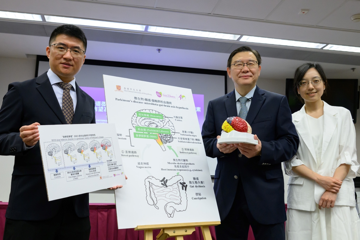 圖片來源:香港中文大學 跨學科合作拆解“微生物—腸道—腦軸”與柏金遜病的關連 為了解“微生物—腸道—腦軸”與柏金遜病發病機制的關係,中大醫學院精神科學系聯同微生物學系、腦神經科、病理解剖及細胞學系、外科學系、腸道微生物群研究中心及德國卡塞爾Paracelsus-Elena醫院柏金遜和運動障礙中心,合共招募441人參與研究,包括健康人士、RBD患者的直系親屬、RBD患者和早期柏金遜病患者。 結果發現RBD患者及其直系親屬的腸道會出現與柏金遜病患者類似的腸道微生態失衡,主要表現為有健康促進作用的細菌(如普拉梭菌和羅斯氏菌)減少,和促進炎症及破壞腸道屏障功能的細菌(如柯林斯氏菌和艾克曼氏菌)增多。而這些菌群變化不能完全被柏金遜病和RBD患者的便秘症狀及服用相關藥物所解釋。 中大醫學院精神科學系研究助理教授黃蓓表示,腸道細菌的改變可以影響腸道以至腦部健康,柏金遜病患者腸道屏障的完整性被破壞,導致微生物的某些代謝產物和促炎因子更容易進入腸道內的神經系統,觸發腸道神經系統乃至中樞神經系統內的突觸核蛋白沉積,繼而引發神經細胞死亡,反映腸道微生態失衡有機會是引致柏金遜病發病的關鍵因素。 微生物標記可區分有柏金遜病先兆的患者 經進一步分析後,團隊發現12個微生物標記物可有效將RBD患者與健康人士區分,日後有望透過機器學習模型進行篩檢,以辨別特異性的腸道微生物特徵,找到患有RBD和處於柏金遜病先兆期的個案,及早介入以減低他們演變成柏金遜病的機會。 中大醫學院精神科學系系主任榮潤國總結:“通過微生物—腸道—腦軸,腸道微生態可以影響及支配各種生理情況,例如我們的睡眠、情緒、記憶力和認知能力等。今次跨學科研究進一步確定在柏金遜病發病、甚至是其先兆期的RBD出現前,患者經已有腸道微生態失衡。通過調整腸道微生物的方法,例如益生菌和益生元等,有機會可及早干預、預防或治療柏金遜及其他腦退化疾病。”(完) 【編輯:崔靜雯】