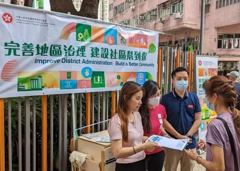 陳穎欣(中)認為,改革後的區議會能為市民排憂解難,提升市民滿足感。(圖片:陳穎欣提供) 工聯會立法會議員陳穎欣向香港新聞網表示,歡迎和堅決支持立法會三讀通過相關條例草案,她認為這是社會各界熱切期盼的結果,修訂條例有助於區議會去政治化,回歸《基本法》賦予的諮詢和服務職能,協助政府做好地區工作。她續稱,完善地區治理後,相信會更有助發揮落實“愛國者治港”原則,維護社會和諧穩定,推動香港由治及興起積極作用。