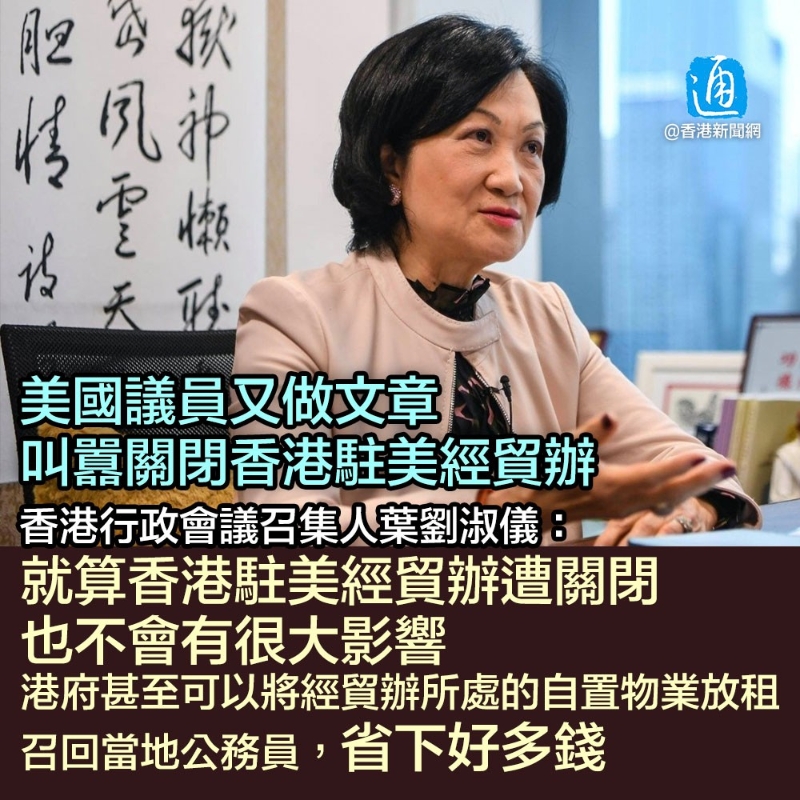 美議員叫囂關閉香港駐美經貿辦,葉劉淑儀:影響不大,省了好多錢分享到: