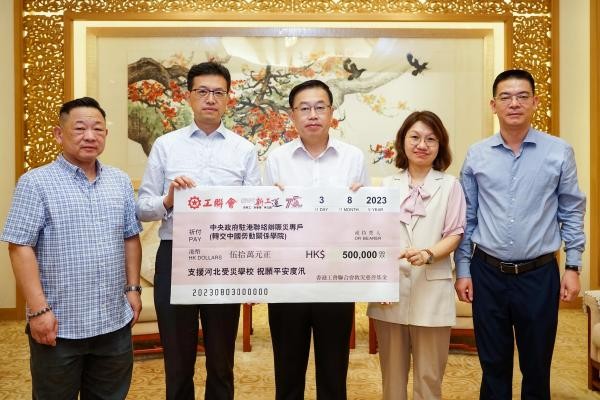 香港中通社圖片 鄭家純捐款2000萬元人民幣 新世界發展有限公司主席、周大福珠寶集團有限公司主席鄭家純以個人名義向中華慈善總會捐款2000萬人民幣,助力當地賑災工作。 鄭家純表示,“一方有難,八方支援”,京津冀的災情牽動着集團全體同仁的心,願與全國人民守望相助、攜手同心,共同助力災區恢復生產生活,為受災同胞早日重建家園貢獻自己的綿薄之力。 李兆基基金捐款2000萬元人民幣 李兆基基金通過香港中聯辦向中華慈善總會捐款2000萬元人民幣,支援京津冀及東北地區防汛搶險及賑災工作。 恒基兆業地產集團主席李家傑表示,災情時刻牽動大家的心,希望通過本次捐款,為受災同胞雪中送炭,協助災區渡過難關,開展災後重建。 香港工聯會捐款50萬港元並發起籌款活動 香港工聯會從“工聯會救災慈善基金”緊急撥出50萬港元善款支援受災學校,由會長吳秋北轉交中聯辦副主任何靖代表接收。同時,工聯會在香港發起籌款活動。