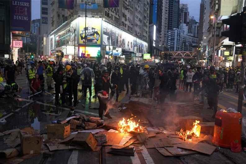2019年10月6日,暴力示威者在銅鑼灣街頭焚燒雜物,企圖延緩警方推進速度。香港中通社圖片 24歲被告馮清華、報稱無業,承認於2019年10月1日在荃灣參與暴動;及於2020年10月至去年7月13日期間,意圖阻撓和妨礙法庭審判。 案情指,2019年10月1日下午三時半,約200名示威者在事發地堵路。有人投擲汽油彈和縱火,警方到場驅散時,有示威者投擲硬物還擊,有示威者在路上淋易燃液體及點燃,形成火墻,警方一度後撤。警方同日四時再次展開驅散行動,被告與其他示威者逃跑,但中途被警員截停並制服。 被告因參與上述暴動而被帶上庭提控,後獲法庭保釋,但其後沒有依法庭命令出庭應訊。他與同案中曾志健等三名潛逃人士在2020年10月前往美國領事館尋求政治庇護,但不成功及被要求離開。被告其後在社交平台有關人士協助下,到不同地方藏匿。 2022年7月,被告等人乘的士打算乘船前往台灣,警方根據情報採取行動並拘捕被告,他當時背包內有一萬元台幣現金、地圖、衣物、手機和遊戲機等。(完) 【編輯:馬華】