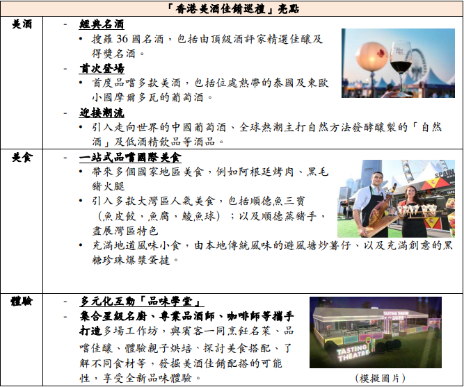 旅發局全力營造香港夜間熱鬧氛圍 美酒佳餚巡禮打響盛事頭炮香港新聞網9月18日電 香港旅遊發展局18日宣布,在未來數月,旅發局將全力舉辦一浪接一浪在晚間舉行的旗艦盛事,並串連中西節慶活動加強推廣;亦將推出全新“香港夜饗樂”旅客餐飲消費券,多管齊下推動香港熱鬧、充滿活力的夜間氛圍,吸引市民和旅客一同參與。 旅發局主席彭耀佳表示,旅發局的“香港美酒佳餚巡禮”及“香港跨年倒數”,將全面回復疫前規模,是不少本港居民及旅客期盼己久﹑來港參與的大型活動,加上串連中秋節﹑萬聖節及聖誕節“香港繽紛冬日巡禮”全方位節慶宣傳推廣,以及城中多項響應“香港夜繽紛”的精彩活動,我相信定能營造全城熱鬧夜間氛圍,吸引旅客與香港市民一起親身感受香港多姿多采的夜間魅力。 旅發局會以三大策略,全力提升香港城中夜晚繁華氣息,為市民及旅客帶來豐富的夜間體驗,並會在旅發局的一站式平台,網羅全城夜間活動資訊﹑消費著數等,方便市民及旅客閱覽,加強推廣攻勢。 一、 旗艦盛事浪接浪登場 串連中西節日宣傳 推高夜間開心氛圍 由9月中秋佳節開始,至10月扮鬼扮馬的萬聖節、一直到12月的聖誕節及除夕夜,旅發局將帶來多項大型盛事及節慶推廣。 a.“香港美酒佳餚巡禮”重臨 打響夜間盛事頭炮