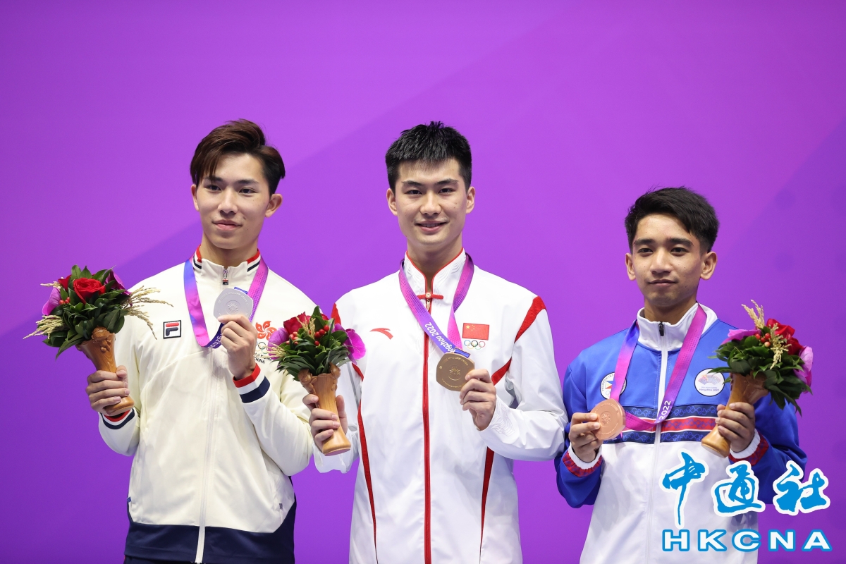 港隊許得恩(左)、國家隊高浩楠(中)、菲律賓選手(右)。 (香港中通社記者 洪少葵 攝) 在上午的太極拳項目中,許得恩以9.743分位居第四,雖距第一名國家隊高浩楠有較大分差,但他表示并未影響心態。 下午,許得恩在動作質量及難度分方面都取得滿分,演練水平獲2.750分,以總分9.750一直位居太極劍項目首位。直到國家隊高浩楠出場獲9.836分,許得恩位居次座。 在上午女子長拳賽中,著一身紅色戰衣參賽的劉徐徐在11位參賽者中是第8位出場的,她憑著穩定表現,以及流𣈱靈活的動作搏得不少掌聲,在動作質量及難度分方面都取得滿分,演練水平獲2.756分,以總分9.756奪得亞軍。 雖然是首次亮相亞運,但劉徐徐大賽經驗不少,曾為第2屆武術套路世界杯贏得女子刀術及棍術兩項冠軍,并為2019年第15屆世錦賽女子棍術及對練摘下冠軍,刀術亞軍,武術項目涉獵廣泛。 加入港隊逾10年,這是劉徐徐首次參加亞運。出賽前,劉徐徐曾對香港中通社記者坦言對拿牌很有信心。(完) 【編輯:李茜】