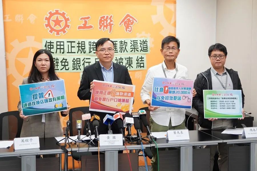 全國政協提案委員會副主任、工聯會理事長、立法會議員黃國表示,自2009年以來工聯會內地諮詢服務中心與香港特區政府駐粵辦提供的“免費法律諮詢服務”,為香港市民提供內地法律查詢和求助,其中關於涉案查詢、匯款凍結等事務查詢長期高企。單是2023年1月至9月,法律熱線一共接獲64宗關於使用本港找換店匯款結果令內地銀行戶口被凍結的查詢求助,平均每月就有7宗以上。