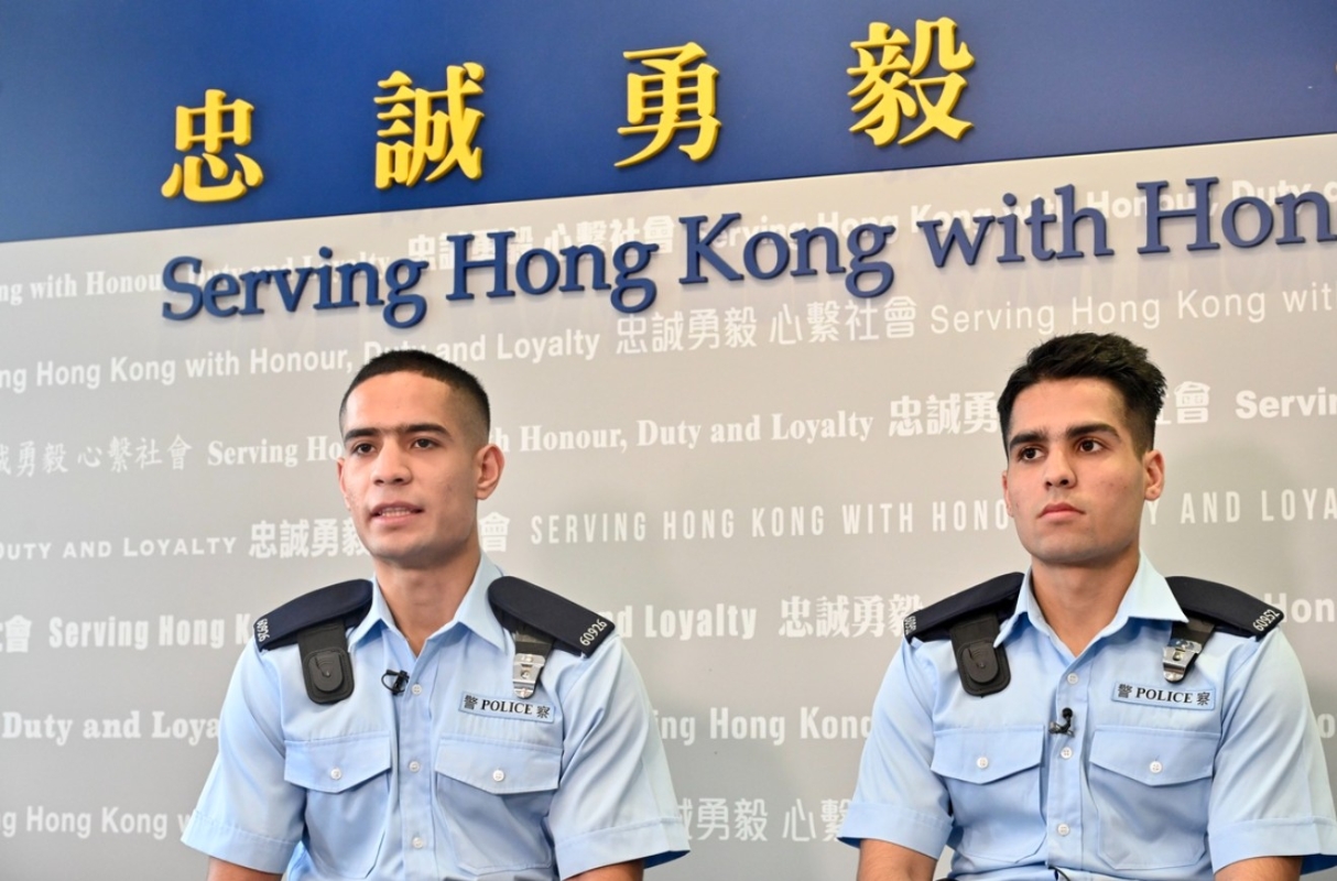 巴基斯坦籍兄弟施志深(左)和何沙文2月正式加入警隊,齊心守護香港。(圖片:政府新聞網) 何沙文說,不少非華裔青年因為膚色而缺乏自信,認為難與本地人競爭,加上來自低收入家庭,對前途更感迷惘。“在很多香港人眼中,非華裔人士通常從事地盤、倉務等體力勞動工作。” 前路茫茫,兩兄弟中學時受香港首位非華裔督察呂文廸一次到校分享的啟發,立志投身警隊,希望成為下一代的榜樣。 “呂文廸告訴我們,只要肯嘗試,非華裔青年也有機會在香港有所作為。” 去年8月,他們通過面試,到警察學院受訓。何沙文體能出眾,以7分14秒完成2,400米長跑項目,更打破學院28年來的紀錄。 善用優勢 捍衞法紀 幾經努力,兄弟二人終達成夢想,今年2月正式“出更”執勤。施志深獲派駐警務處元朗分區軍裝巡邏小隊第一隊,何沙文則隸屬屯門分區軍裝巡邏小隊第三隊。 其中,元朗區較多非華裔人士聚居,伊斯蘭教徒每逢周五中午,會到區內兩間主要清真寺會所進行禮拜。 “我和同事通常會在該時段到會所巡邏,與非華裔人士交流,更好地了解他們的生活習慣和需要,以及近期有否特別事件發生,再向上司匯報。”施志深說。