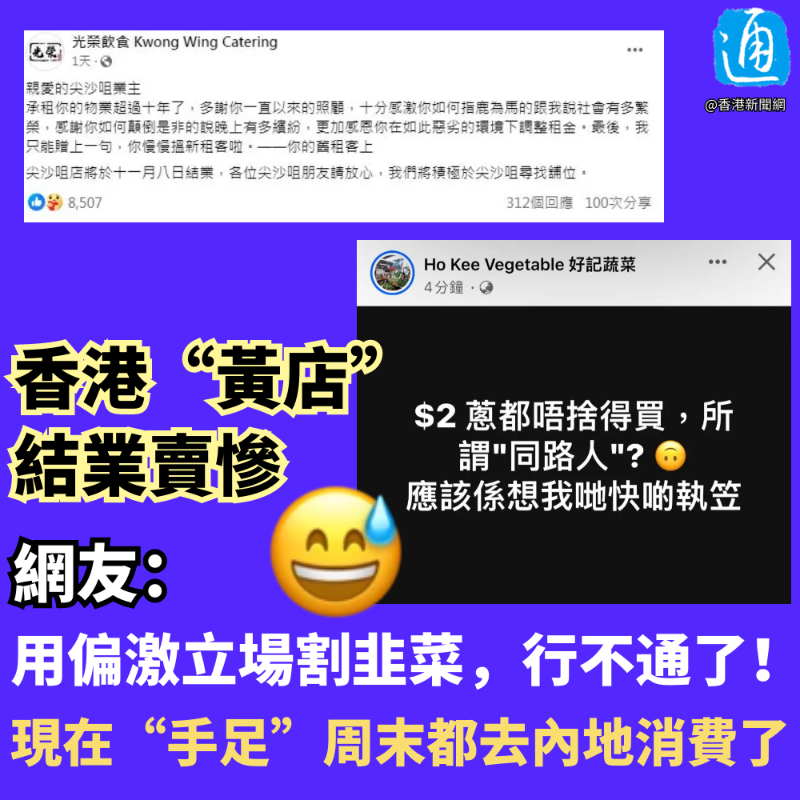 香港“黃店”結業賣慘 網友:用偏激立場割韭菜,行不通了!分享到: