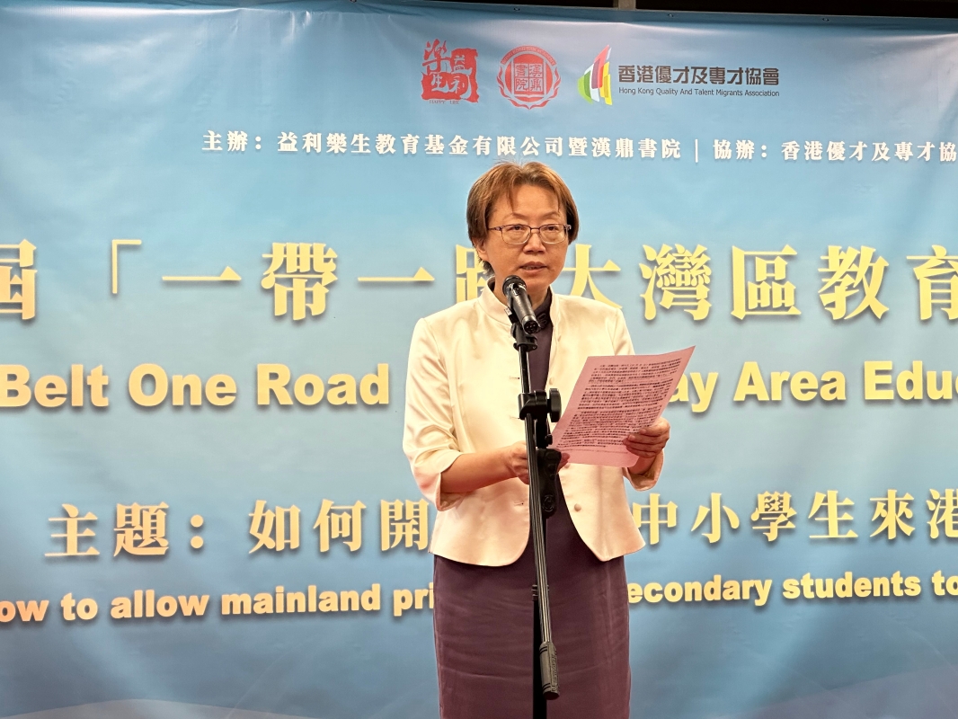 香港新聞網11月11日電(記者 陳卓儀)由益利樂生教育基金暨漢鼎書院主辦、香港優才及專才協會協辦的第三屆“一帶一路”大灣區教育高峰論壇,11月11日在香港漢鼎書院舉行。與會嘉賓探討開放內地中小學生來港就讀,發展香港成為國際教育樞紐。 近年來,由於出生率等原因,香港中小學生有流失學生現象,論壇聚焦開放內地中小學生來港就讀議題,特別是大灣區的學生來香港讀書,希望能實現教育資源的流動互補共享,為香港培養未來人才。 益利樂生教育基金董事會主席、漠鼎書院創校校監徐莉表示,香港特區行政長官李家超發佈的施政報告關鍵詞是“搶人才”,徐莉認為香港目前的人才格局需要進一步擴大。“名校畢業生等高精尖人才可以來港工作,那麼,優秀的中小學生為什麼不可以來港讀書呢?”