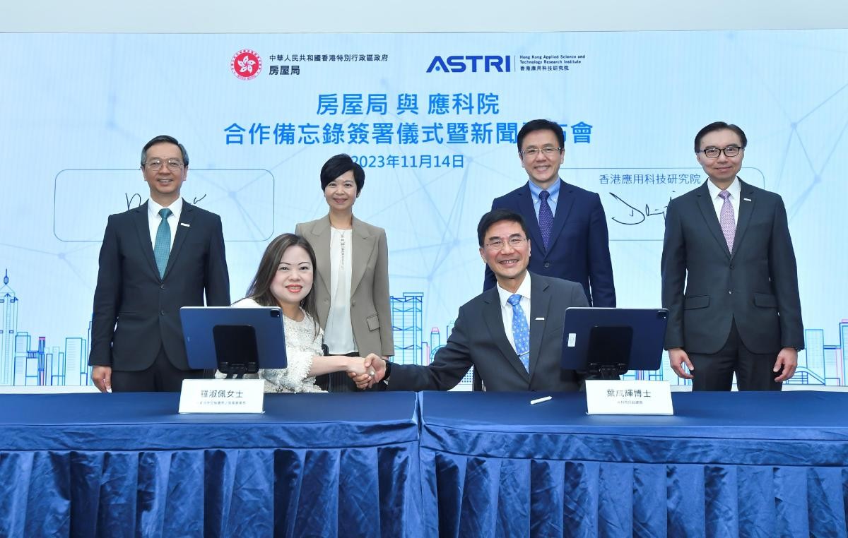 香港新聞網11月14日電 香港房屋局與香港應用科技研究院(應科院)今日(14日)簽署合作備忘錄,就提升建築效率和安全、優化物業管理流程,共同探討創新解決及應用方案。 房屋局和房屋署(香港房屋委員會的執行機關)肩負起龐大的公營房屋建屋量,並管理轄下近200條公共屋邨,日常在建築工程進度和安全方面的監測、物業維修保養和管理工作等,均面對不同挑戰。就此,房屋局與應科院建立策略夥伴關係,以期利用創新科技共同探索解決和優化方案。