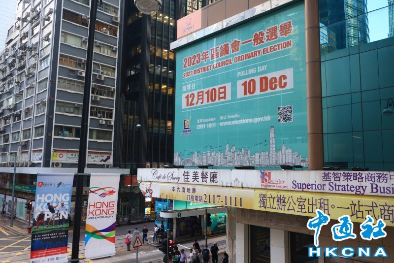 圖為香港中環街頭張貼2023年區議會一般選舉的巨幅海報。香港中通社圖片 陳國基指,公務員作為香港特區政府的骨干,肩負貫徹落實“一國兩制”的重大責任,任重道遠。 影片中,陳國基聯同政務司司長辦公室轄下行政署和法律援助署的兩位同事,一起呼籲各部門同事和家人,選出愛國愛港、有承擔、有抱負、願意為地區做實事的區議員,建設更美好、更幸福的社區。 特區政府公務員事務局局長楊何蓓茵同日在社交平台上載影片,邀請公務員事務局3名同事,分別以潮州話、福州話和上海話,呼籲已成為選民的鄉親,於區選投票日踴躍投票。 “只要在這片土地落地生根,大家都是自己人。”楊何蓓茵在影片中先後以廣東話及普通話呼籲全港合資格選民,在這個重要時刻履行公民責任投票,選出愛國愛港、有能力的區議員,用心解決市民的急難愁盼。 區議會選舉將選出176名地區委員會界別議員及88名區議會地方選區議員。提名期於10月30日結束,共接獲399份提名表格,區議會資格審查委員會已裁定提名有效。(完) 【編輯:馬華】