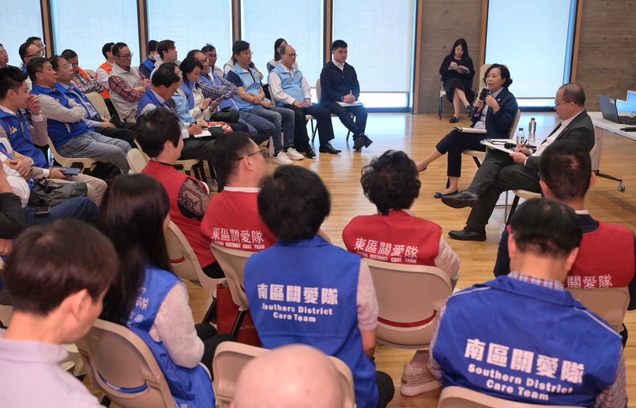 香港新聞網11月21日電 民政及青年事務局(民青局)局長麥美娟今日(21日)出席為“地區服務及關愛隊伍”舉辦的《行政長官2023年施政報告》座談會,向約60名“關愛隊”代表簡介施政報告中民青局相關的政策措施,並和與會者交流,聆聽他們的意見。 麥美娟於座談會上介紹施政報告有關民政及青年事務範疇的政策,並強調“關愛隊”是支援政府地區工作的服務隊伍,在完善地區治理下扮演重要角色。因此,“關愛隊”應充分了解施政報告的內容,並在各區民政專員作為“關愛隊”總指揮的指示下,進入社區協助宣傳政府政策,讓市民大眾更了解政府的施政理念和香港的發展方向。