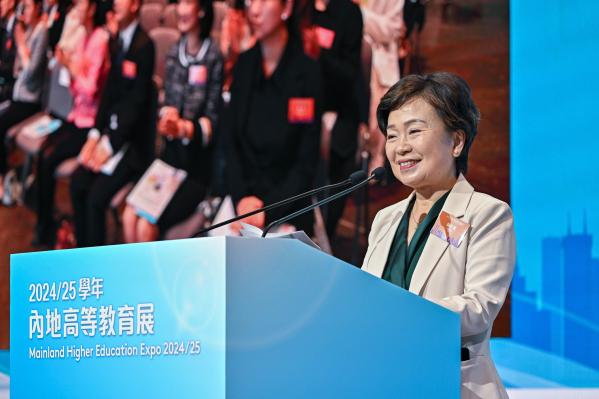 由國家教育部和教育局聯合舉辦的2024/25學年內地高等教育展12月2日起一連兩日在灣仔香港會議展覽中心舉行。圖為教育局局長蔡若蓮博士在開幕禮上致辭。 香港中通社圖片 香港中學文憑考試相等於內地的高考。 在開幕禮上,特區政府教育局局長蔡若蓮致辭時表示,文憑試收生計劃多年來取得良好成果,自2012/12學年推出至今,共有超過4.2萬名香港學生通過計劃報考內地高校。2024/25學年參與計劃的院校數目將增加至138所,為學生提供更多元、更適合自己的選擇。 她表示,國家教育部一直關懷香港年青人的培育工作,每年都會組織龐大的高校代表團來港參與教育展,並鼓勵有理想有抱負的同學把握機會,藉文憑考試收生計劃報讀心儀的内地院校及課程,拓寬自己視野,追求學問的同時,深入了解國家發展大局,把握粵港澳大灣區建設下的無限機遇。 約130所參加2024/25學年文憑試收生計劃的內地高等院校會透過展覽攤位,介紹其院校及學科資訊、收生要求及名額等。國家教育部的代表亦將講解計劃的收生程序及安排。教育展亦設有多場分享會,包括由内地院校代表介紹各個課程的特色、内地畢業的香港學生分享升學經歷,以及由不同嘉賓提供就業前景的分析等。(完) 【編輯:胡雪石】