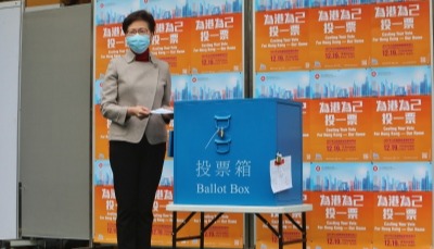 特地從成都趕來投票的王先生。(香港中通社記者 徐嘉儀 攝) 從廣州回港投票的黃女士亦指,作為香港人的一份子,應該做這些事情。