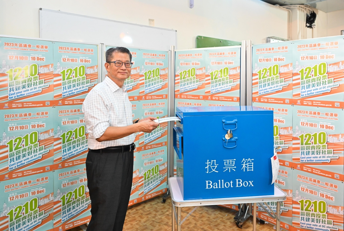 香港新聞網12月10日電 香港區議會選舉10日投票。香港特區政府財政司司長陳茂波於香港仔南島中學票站投票後表示,重塑後的區議會將回歸本質,為市民就所關心的地區事情,向政府傳達社情民意。