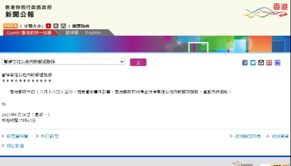 香港寄往泰國的郵遞服務受泰國水浸影響延誤