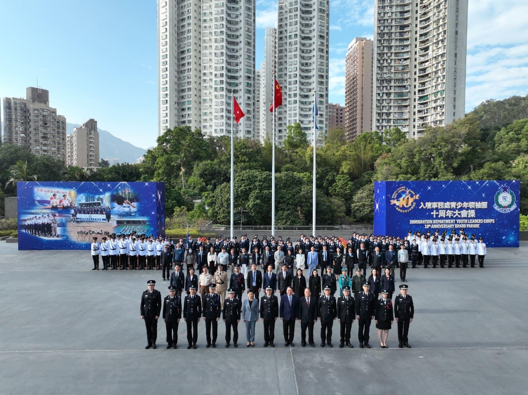 香港政府新聞處圖片 大會操後,陳國基與入境處處長郭俊峯及領袖團管理委員會委員主持十周年慶祝儀式,並頒發晉升證書予完成訓練和考核的隊員。 郭俊峯在典禮上表示青少年工作是入境處非常重視的一環,感謝顧問委員會為領袖團的發展提供寶貴意見與資源,以及各間會員學校成為長期伙伴,與入境事務學院共同為隊員提供恆常訓練。 他展望未來繼續帶領入境處堅守國家南大門,同時做好青少年工作,為國家培養生力軍。領袖團總監鄭錦鐘博士指出顧問委員會未來會繼續支持領袖團,為香港青少年的成長及發展創造機會。 入境處於2013年12月成立青少年制服團隊,並於2021年正式改名為“入境事務處青少年領袖團”,為香港青少年提供紀律及領袖訓練。透過多元化的訓練及團隊活動,協助隊員建立愛國愛港精神和守法護法意識,同時培養隊員成為具備良好品德、領袖才能、正向思維和熱心服務社會的年青新一代。(完) 【編輯:崔靜雯】