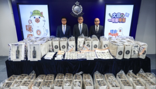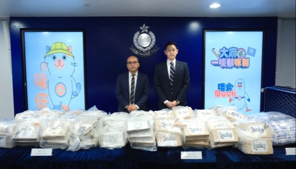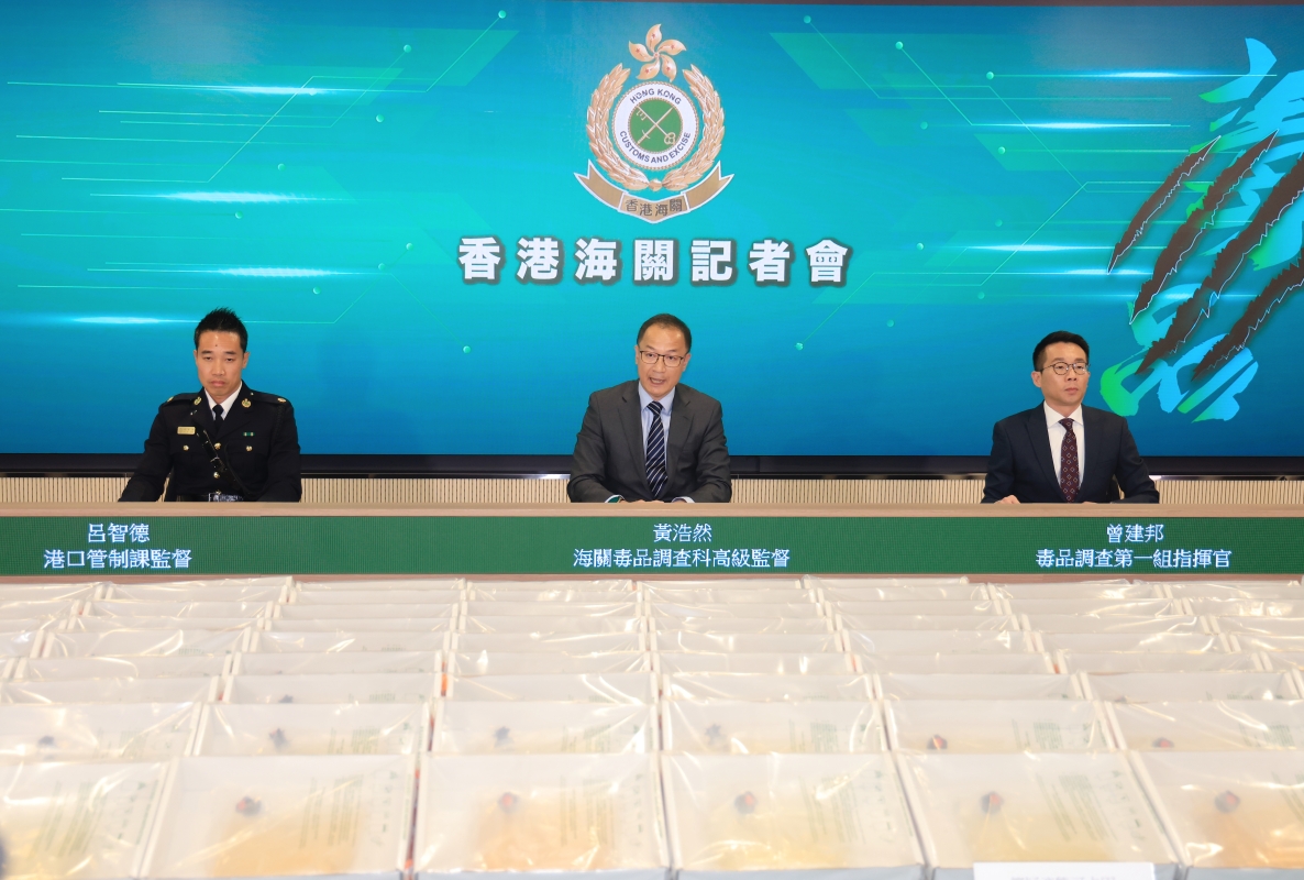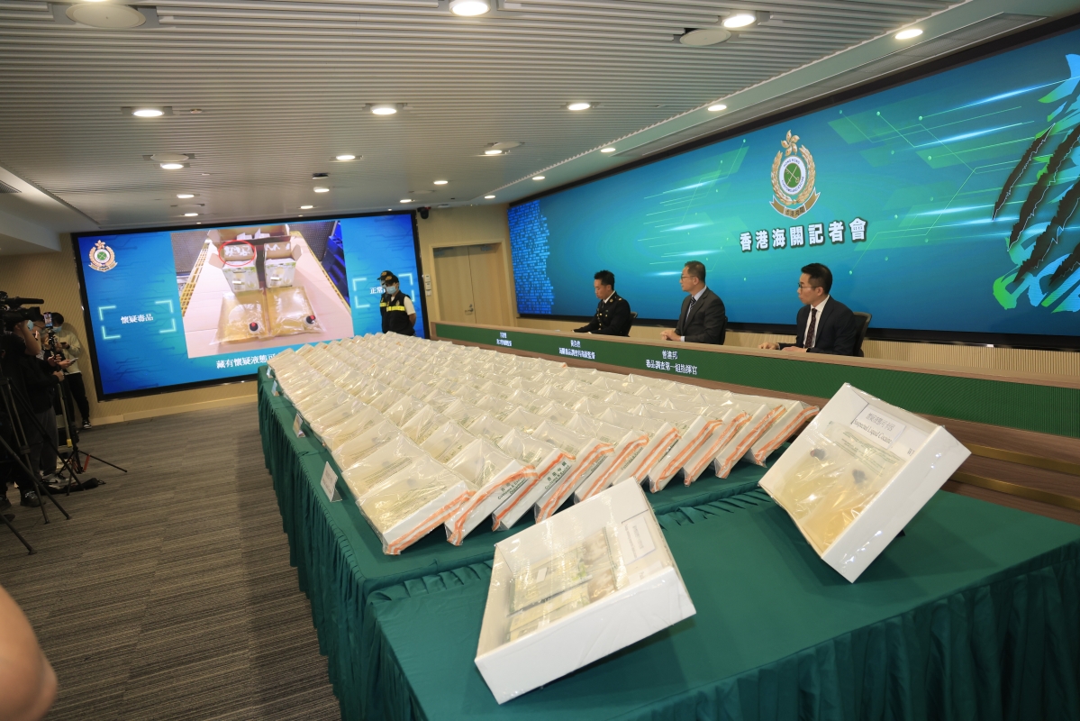 1月15日,香港海關於海關總部大樓舉行記者會,講述偵破大型海路販毒案並檢獲約四億九千萬元懷疑液態可卡因詳情。 【編輯:曹文毓】