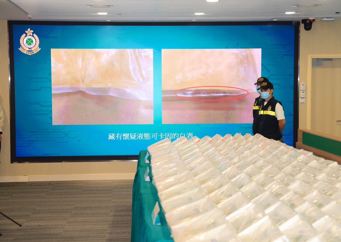 海關說,檢查貨物期間,發現當中部分裝有白酒的紙盒,有被重新包裝過的痕跡,而且重量不一致。當關員打開包裝盒後,發現部分裝有白酒的透明膠袋,並沒有印上有關貨物的生產編號,以及生產日期等資料,隨即對所有飲品進行快速測試,結果發現當中有37箱白酒對可卡因呈現陽性反應,佔總貨量約5%。
