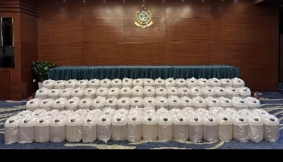 香港新聞網1月15日電(記者 曹文毓)香港海關於去年12月破獲一宗大型販運毒品案件,檢獲約444公斤懷疑液態可卡因,估計市值約四億九千萬元,並拘捕兩名懷疑涉案人士。 1月15日,香港海關於海關總部大樓舉行記者會,講述偵破大型海路販毒案並檢獲約四億九千萬元懷疑液態可卡因詳情。