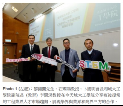 香港工程師學會會長李志康博士、工程師表示,學會在推廣工程專業和培育人才方面一直不遺餘力。他表示,工程專業的範疇相當廣泛,涵蓋建造、資訊科技、生物醫學、消防和核子等不同界別,學會會繼續和城大及學界攜手合作,推廣工程專業的多樣性,鼓勵年青一代把握工程界的機遇,在社會不同領域發揮所長,貢獻社會,創造更好未來。