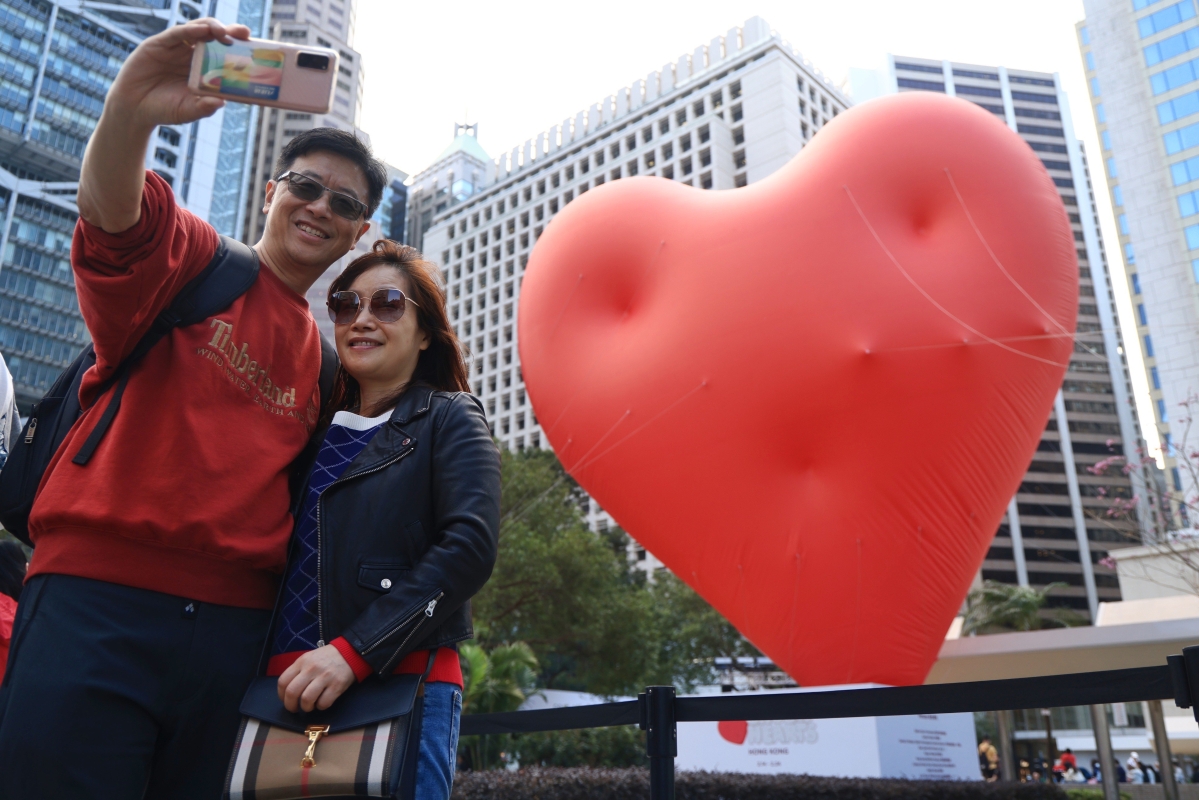 香港中通社圖片 根據Chubby Hearts Hong Kong策略研究伙伴——嘉柏市場策略研究有限公司(CAP Strategic Research Limited)統計,項目首日四個展出地方包括中環皇后像廣場、旺角花墟、大埔林村許願廣場以及卑路乍灣海濱長廊參觀總人次為65,524,其中遊客人數比例佔20.7%,已大幅超出預期。 與此同時,根據大數據分析公司Brandwatch的報告指出,這次活動受到廣泛關注,僅在活動舉行的首兩天,在各大社交平台上就獲得了超過18萬次的關注度(engagement),並且活動亦成功地接觸超過3千萬人次(Reach),其中包括在小紅書、FACEBOOK, IG等,超過97%的網民對活動表示出中性至正面的感受,而且在活動的首日,盛事更一度登上Google趨勢的熱搜榜首位。 設於中環皇后像廣場花園的巨型飄浮紅心由即日起展出至2月24日,每天展出時間為下午1時至晚上9時。 (完) 【編輯:陳偉根】