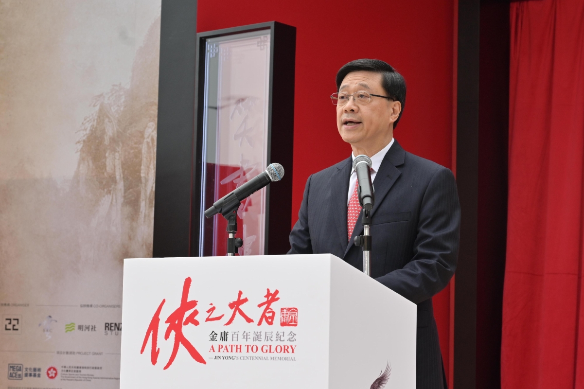 李家超。圖源:政府新聞處。 李家超在出席“俠之大者──金庸百年誕辰紀念”開幕典禮時致辭表示,查良鏞博士是香港的報界巨人,更曾擔任基本法起草委員會委員、政治體制小組港方負責人、基本法諮詢委員會執行委員會委員等多項重要公職,是確保香港順利回歸祖國的中流砥柱,幫助香港奠定長期繁榮穩定的重要基礎。 “俠之大者──金庸百年誕辰紀念”將歷時六個月,遍布香港的文化文旅地標及公共空間,將金庸先生筆下的武俠角色以不同的形式逐一呈現,例如由著名雕塑藝術家任哲創作的36尊金庸角色人物雕塑,包括小龍女、楊過、滅絕師太、金輪法王、成吉思汗、郭靖等人物。 李家超表示,政府積極推動盛事經濟,今年首次推出香港專屬的“藝術三月”,藉着精心安排的文化藝術活動,讓市民和旅客感受香港這個國際都會獨有的藝術魅力。 他強調,今次香港舉辦的金庸文化盛事,將會是全球的盛事,吸引世界各地的金庸迷來到香港,向這位武俠小說大師致敬,在香港以至全球華人社會再掀起一股“金庸熱”!(完) 【編輯:譚暢】