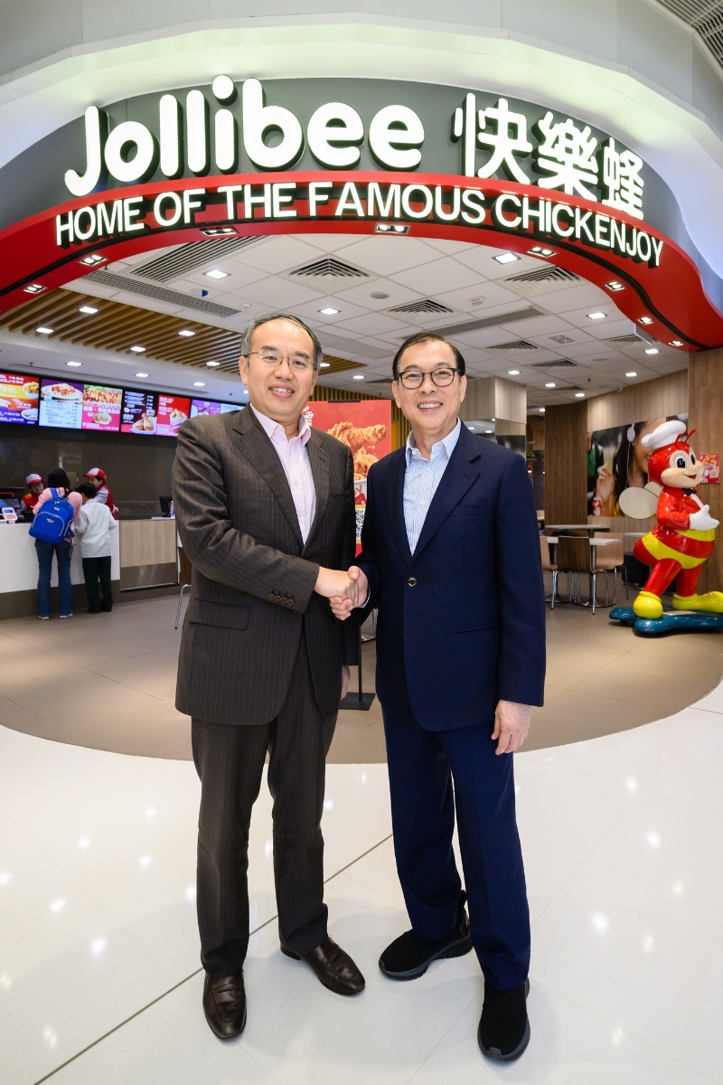 香港新聞網3月26日電 25日,香港特區政府財經事務及庫務局局長許正宇歡迎專程來港參加“裕澤香江”家辦論壇的Jollibee Foods Corporation主席兼創辦人陳覺中。兩人在將軍澳Jollibee快樂蜂餐廳茶聚,一同品嚐炸雞美食。 Jollibee集團由陳覺中於1975年創立,並迅速發展成全球最大的快餐連鎖餐廳之一。