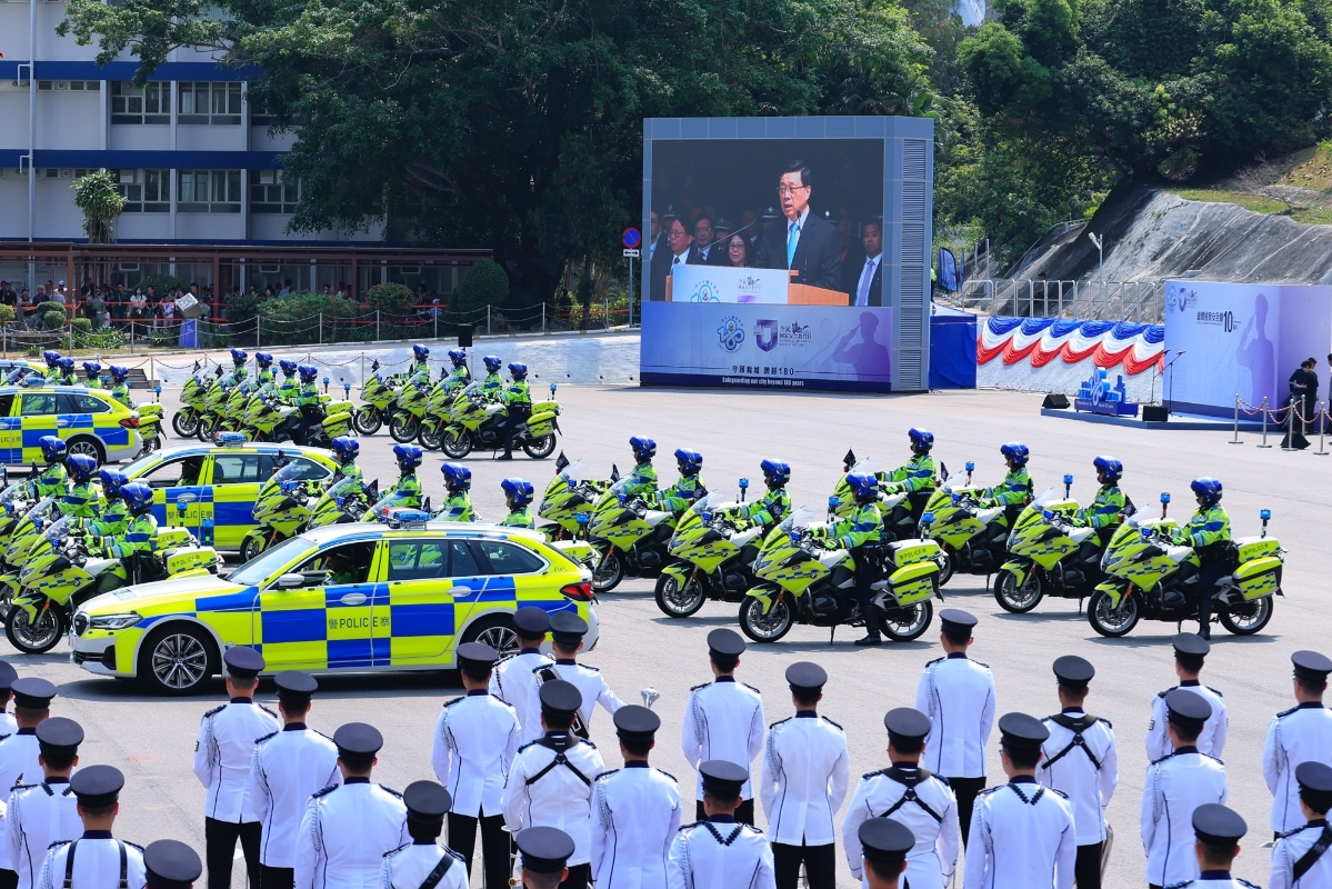 香港新聞網4月13日電(記者 曹文毓)4月13日,香港警務處在香港警察學院舉行“全民國家安全教育日暨香港警隊180周年警察學院開放日”活動,開放日設有“國安守城”、“跨越180”、“警伴同趣”及“專業新警界”四個主題區,並以大匯演揭開序幕,除了音樂表演外,還有駕駛表演、警犬服從表演及由特別任務連(飛虎隊)、反恐特勤隊及無人機隊參與的反恐演練。警隊各單位及兼任職務隊等在現場設置攤位,透過互動遊戲讓市民體驗警隊專業性。