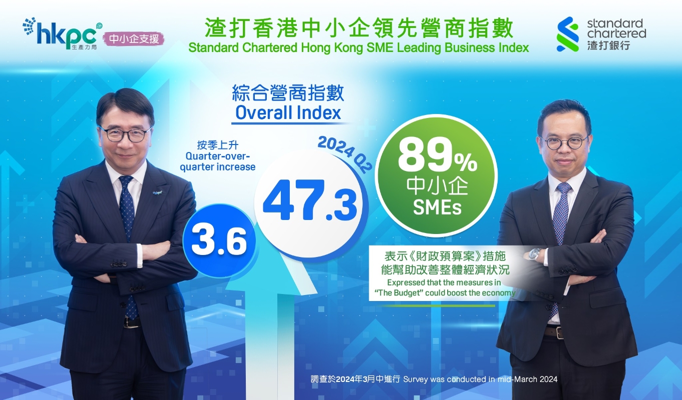 香港新聞網4月30日電 香港生產力局今天公布2024年度第二季“渣打香港中小企領先營商指數”調查結果,本季綜合營商指數較上季回升3.6至47.3,反彈到2023年第四季的水平(47.6)。