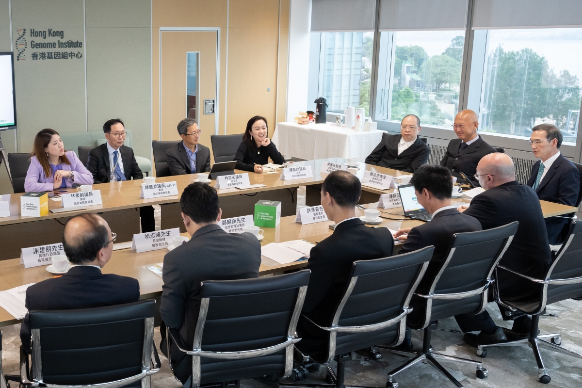 政府新聞處圖片 議員聽取基因組中心主席蔡永忠、副主席梁憲孫教授、行政總裁羅思偉醫生和首席醫務及科學總監鍾侃言醫生介紹基因組計劃。該計劃是本港首個大型基因組測序項目。基因組中心自二○二一年運作以來,與衞生署、醫院管理局和大學醫學院合作,透過全基因組測序技術,幫助自願參加計劃的病人及其家屬尋找可能致病的基因變異。 他們指出,基因組計劃旨在建立本地人口的基因組數據庫、測試設施及人才庫,以促進基因組醫學的發展和應對香港長遠醫療需要。議員其後與基因組中心的管理團隊就基因組計劃及基因組醫學的發展交流意見。