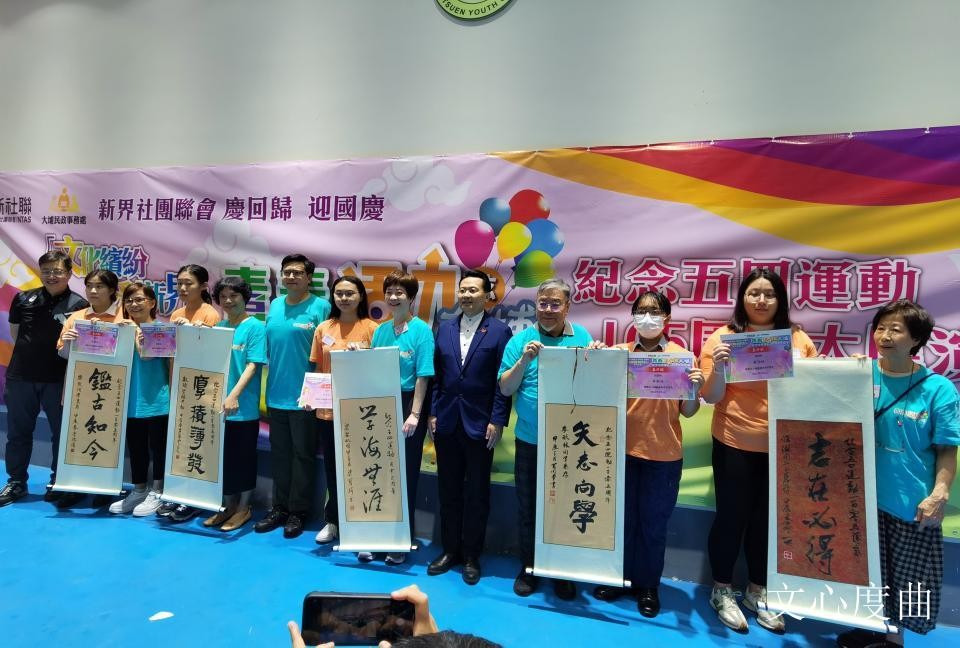 香港新聞網5月4日電 今日是五四青年節,新界社團聯會舉辦紀念五四運動一百零五周年大滙演《青春活力炫大埔》。 新界社團聯會理事長譚鎮國、政制及內地事務局副局長胡健民、港區全國人大代表陳勇、大埔各界協會主席陳佩添等出席了活動。新界社團聯會邀請了105位書法家和105位優秀學生出席活動,由書法家向學生贈送書法作品。 雖然今日天雨,活動無法在原計畫的露天廣場進行,但出席活動的嘉賓和學生熱情不減。在大埔林村禮堂,孫方中小學管樂團和羅定邦中學武術團作了精彩表演。