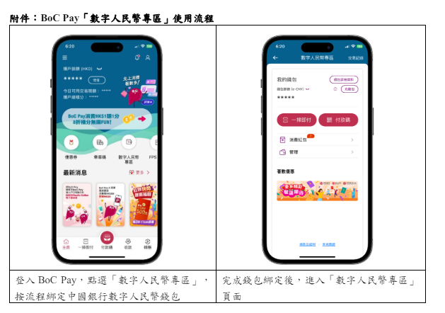 中銀香港 BoC Pay“數字人民幣專區”為本地客戶提供便捷使用中國銀行數字人民幣服務的渠道。已開通中國銀行數字人民幣錢包服務的客戶,在“數字人民幣專區” 完成綁定錢包後,即可直接於 BoC Pay 使用二維碼支付、充值、查詢、領取推廣消費 紅包等功能,讓數字人民幣的支付體驗更為流暢。 中銀香港副總裁邢桂偉表示:“中銀香港一向致力推進數字人民幣的普及使用, 並積極參與數字人民幣的生態環境建設。總結了前期數字人民幣沙盒驗證階段及推廣階段的客戶反饋後,為進一步方便客戶使用數字人民幣錢包,本行已優化 BoC Pay 服務功能,讓客戶可直接透過 BoC Pay‘數字人民幣專區’綁定中國銀行數字人民幣錢包,使用數字人民幣支付服務。此外,為推動更多本地商戶接受數字人民幣付款, 中銀香港更與萬寧合作,陸續擴展數字人民幣收款服務;同時,中銀香港正與HKT探討就支援數字人民幣支付功能的合作。此等舉措將可為內地來港旅客提供更多數字人民幣的支付場景,既可降低本地零售商戶跨境資金清算成本,亦能提升商戶收益。” 中銀香港曾推出兩輪數字人民幣消費紅包推廣活動,今年 4 月推廣期內,北上使用數字人民幣的交易筆數及金額,均較去年首輪推廣增加兩倍,主要集中於零售、餐飲、娛樂等支付場景。為進一步推動數字人民幣的使用,由即日起至5月26日,中銀香港與深圳市福田區政府推出“數幣歡樂購”推廣活動,客戶可透過 BoC Pay“數字人民幣專區”領取共200元數字人民幣消費紅包,於福田區指定商戶使用。同時,由即日起至 5 月 30 日,中銀香港推出數字人民幣消費紅包,供全新及現有客戶領取,適用於指定支持數字人民幣錢包付款的商戶。(完) 【編輯:陳偉根】