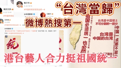 香港新聞網5月24日電 反“台獨”,這些香港藝人也發文了! 在台灣當局領導人賴清德“5·20”講話發表“台獨”言論後,5月22日一早,央視新聞官方微博發布帖文,強調“台灣從來不是一個國家,也永遠不會成為一個國家”,指出 “‘台獨’死路一條,祖國統一勢不可擋!中國終將實現完全統一。”有關帖文其後獲大批藝人轉發,當中亦不乏香港藝人。 翻看有關微博可見,內地藝人肖戰、檀健次、王鶴棣、王一博、王俊凱、易烊千璽、迪麗熱巴、楊紫、白鹿等紛紛加入轉發行列;持有微博賬號的香港藝人也不落人後,甄子丹、謝霆鋒、陳偉霆、袁詠儀、歐陽震華、惠英紅、王嘉爾、王祖藍等歌手、演員亦轉發央視有關帖文,表態反“台獨”。