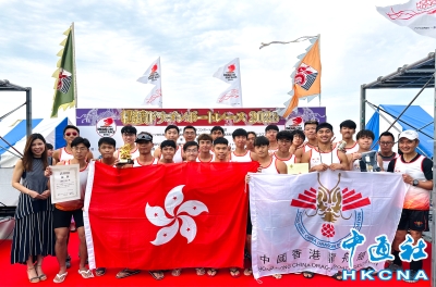 香港新聞網6月2日電 香港杯龍舟賽2日在日本橫濱山下公園海旁舉行,中國香港龍舟總會戰勝其餘27支勁旅,成功奪標,由香港駐東京經濟貿易助理代表謝智浩頒發獎杯。