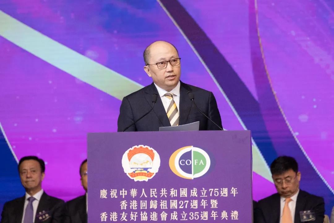 鄭雁雄致辭時表示,香港友好協進會自1989年成立以來,在全國人大、全國政協、中央統戰部、中央港澳辦和香港特區政府等有關方面的關心支持下,已經發展成為凝聚港區全國人大代表、全國政協委員和中華海外聯誼會理事等愛國愛港人士的重要活動平台、學習平台和工作平台,是愛國愛港陣營的一面旗幟,參與香港社會事務、維護繁榮穩定的中堅力量。今年是中華人民共和國成立75周年,也是香港邁向由治及興極為關鍵的一年。隨著《維護國家安全條例》刊憲生效,香港迎來全力拼經濟、謀發展、惠民生的最好時期。希望香港友好協進會繼續當好國家安全、社會穩定的共同維護者,帶頭堅定維護國家主權、安全、發展利益,堅決維護憲法和基本法確定的特別行政區憲制秩序,春風化雨般做好國家安全宣傳推介、解疑釋惑等工作;繼續當好推動高質量發展的共同促進者,引領香港社會各界緊緊抓住中國式現代化進程中的香港機遇,在因地制宜發展新質生產力、推動高質量發展的新征程上展現香港作為、香港擔當,發揮香港作用、香港貢獻;繼續當好青少年成長成才的共同關愛者,幫助青少年切實增強國家意識和愛國精神,為青少年成長成才搭台架梯,讓愛國愛港傳統深入人心、薪火相傳。希望香港友好協進會繼續發揮好“雙重積極作用”,堅定愛國愛港立場,廣泛凝聚建設香港的積極力量,團結奮鬥立新功,再展新猷迎未來。 中央政府駐港聯絡辦副主任尹宗華、駐港國家安全公署副署長孫青野、外交部駐港特派員公署特派員崔建春、中國人民解放軍駐港部隊副司令員譚志偉,立法會主席梁君彥,行政會議非官守議員召集人葉劉淑儀,香港友好協進會會員、香港各界人士等出席典禮。 香港友好協進會是由9位港區全國政協委員發起成立的愛國愛港社團,會員以港區全國人大代表、全國政協委員和中華海外聯誼會理事為主體。(完) 【編輯:張明臻】
