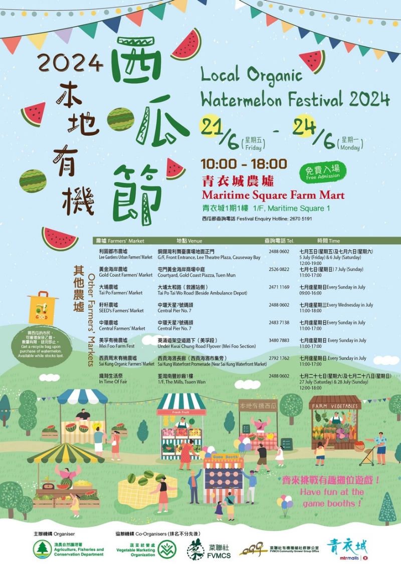 香港漁護署舉辦2024本地有機西瓜節分享到: