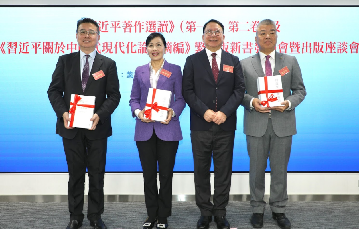 《習近平著作選讀》第一卷、第二卷和《習近平關於中國式現代化論述摘編》繁體版在2024年香港書展首發。圖為新書揭幕儀式。 《習近平關於中國式現代化論述摘編》系統反映了習近平對中國式現代化中國特色、本質要求和重大原則等豐富內涵的深刻闡釋,集中體現了黨的十八大以來中國式現代化在理論和實踐上的創新突破,展現了黨領導人民成功走出的中國式現代化新道路、創造的人類文明新形態、繪就的現代化新圖景。 三部圖書繁體版的出版發行,有助於港澳讀者系統了解習近平新時代中國特色社會主義思想,深刻理解中國式現代化的理論體系和實踐要求,對於引導港澳同胞增進國家、民族和文化認同,與全國各族人民一道勠力同心,為實現中華民族偉大復興而團結奮鬥,具有十分重要的意義。