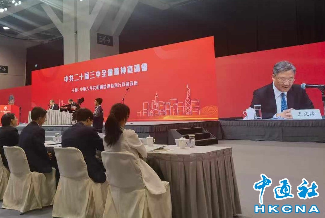 中央宣講團成員、全國人大常委會法制工作委員會主任沈春耀緊緊圍繞習近平總書記在黨的二十屆三中全會上的重要講話和《中共中央關於進一步全面深化改革、推進中國式現代化的決定》(以下簡稱《決定》),從深刻理解全會主題和進一步全面深化改革、推進中國式現代化的重大意義,深刻理解進一步全面深化改革的指導思想、總體目標和重大原則,全面準確理解《決定》提出的重大舉措和任務要求,全力以赴抓好全會精神貫徹落實等方面,對全會精神進行了宣講。他表示,香港各界人士和管治團隊都非常關心全會精神,充分反映了香港同胞對中央重大部署、對國家發展的關注,以及對香港在其中發揮作用的願望。 中央宣講團成員,商務部黨組書記、部長王文濤著重從全面準確理解《決定》提出的重大改革舉措,特別是經濟體制改革的重大部署進行了宣講。他指出,進入由治及興的新階段,香港迎來全力拼經濟、謀發展的最好時期,更需要融入國家改革大潮,鞏固和提升香港獨特地位和優勢,積極對接國家戰略,充分把握國家發展帶來的機遇,當好背靠祖國、聯通世界的“超級聯繫人”“超級增值人”,在新的改革征程中不斷譜寫“一國兩制”精彩華章。從香港融入改革發展大局看,“一國兩制”的生命力和優越性不斷顯現。香港在國家構建對外開放格局下發揮日益重要的作用,在發展新質生產力上也大有可為。 香港特區行政長官李家超出席有關宣講活動。他表示,感謝中央宣講團來港宣講,令與會者和廣大市民對全會精神有更深刻認識和理解,獲益良多。香港要通過進一步改革實現更好發展,既要進一步發揮“一國兩制”下背靠祖國、聯通世界的獨特優勢,也要在推動自身發展、與內地高度融合發展的進程中,不斷致力尋求政策、機制、體制的創新突破,持續鞏固及提升自身優勢,以香港所長貢獻國家所需。 中央港澳工作辦公室副主任、國務院港澳事務辦公室副主任、中央人民政府駐香港特別行政區聯絡辦公室主任鄭雁雄表示,《決定》涉及香港的改革措施分量很重,飽含中央的關愛眷顧與厚望重托,為香港更好發揮獨特作用提供了戰略支點,為香港由治及興帶來新的重大機遇。中央宣講團成員到香港宣講,將幫助大家進一步深化對全會精神的理解。 26日下午舉行的宣講會通過香港特區政府網站、香港電台等渠道進行了直播,供市民即時收看。沈春耀、王文濤在宣講會現場與香港社會各界人士進行了問答互動。(完) 【編輯:陳卓儀】