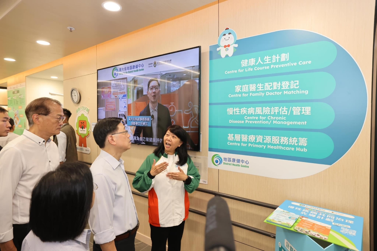 香港新聞網9月14日電 香港特區行政長官李家超14日在社交平台發文指,在基層醫療健康專員彭飛舟的陪同下,他與醫務衞生局局長盧寵茂、民政及青年事務局局長麥美娟和民政署署長張趙凱渝到黃大仙地區康健中心了解運作情況,聆聽市民的用家體驗。