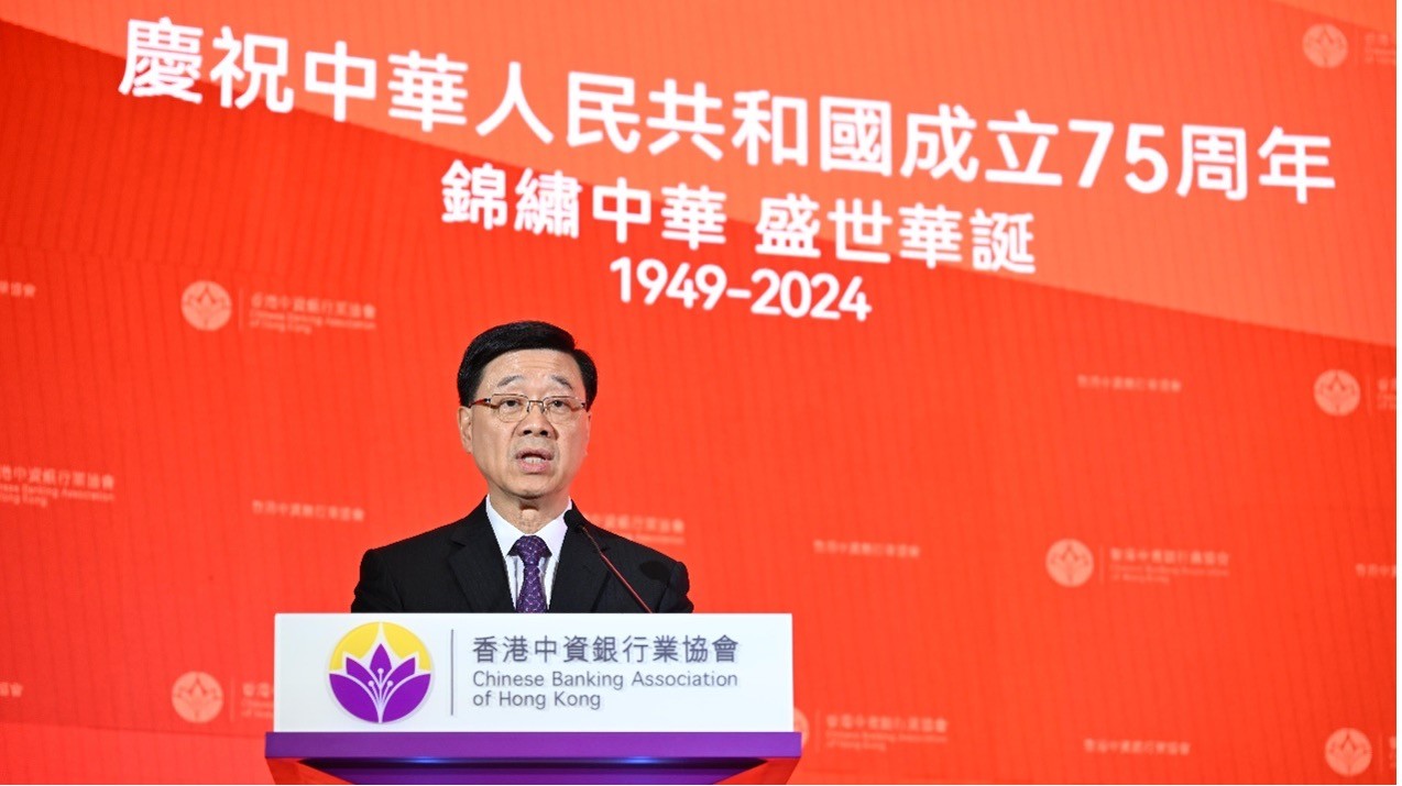 李家超在致辭中表示:國家一直支持香港的發展,二十屆三中全會指出要發揮“一國兩制”制度優勢,鞏固提升香港國際金融、航運、貿易中心地位。中資銀行積極支持香港經濟建設和社會發展,協助中小企業拓展業務、參與國際市場,為香港繁榮穩定作出貢獻。香港將積極融入國家發展大局,充分善用優勢特點,因地制宜發展新質生產力。期盼香港中資銀行繼續盡其所長,助力香港發揮作為超級連繫人和超級增值人的角色,支持香港鞏固提升國際金融中心地位、打造國際高端人才集聚高地。